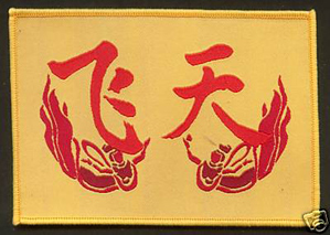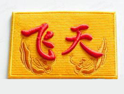 Two views of a Shenzhou 7 patch worn by technicians during spacecraft preparation at the launch site.