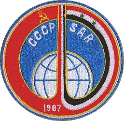 The mission patch was worn before and during the mission by all three Soyuz TM-3 crew members. During training, the patch was worn on either the left (Sokol) or right (training flightsuit) chest, making it more visible for pr-photography. During the mission, the patch was worn on the right sleeve by all three on both Sokol and PK-14-suits. Both suits of Faris were completed by a Syrian flag on the left sleeve, a Syrian seal on the left chest and a national Syrian aerospace-related patch on the right chest.
