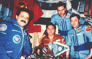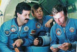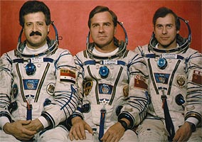 The back up crew for the Soyuz TM-3 mission consisted of commander Anatoli Solovyev, flight engineer Viktor Savinich and Syrian cosmonaut Munir Habib.