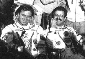 Faris returned to Earth aboard Soyuz TM-2 on July 30, 1987, together with Soyuz-commander Viktorenko and Mir-2 Flight Engineer Aleksandr Laveikin, who had developed "an irregularity in his heart rhythm" and had to be replaced. During the Shuttle/Mir-program, it became known to NASA psychologists that the decission to break up the 174-day Laveikin/Romanenko partnership was prompted by "interpersonal issues" as well.