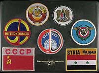 The three other patches worn by Faris: the Syrian flag, the Syrian seal and a Syrian aerospace related patch.