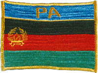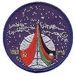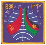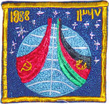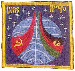 ![]() The picture of the original patch at the top of this page was part of a Presentation Patch Set for this mission and was scanned from the Sotheby's 1993 Russian Space History auction catalogue. The Afghan flag and seal were scanned from the book '40 Let Kosmicheskogo Polviga' (Moscow, 2000). Two souvenir versions of the patch exist: the Space Commerce Corporation reproduction (12 stars; left) and the Stewart Aviation version (right), which is probably based on a variation of the artwork.