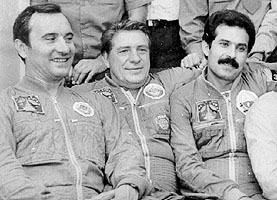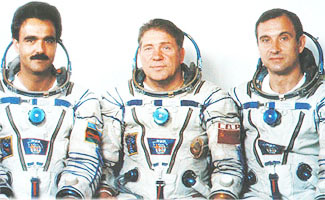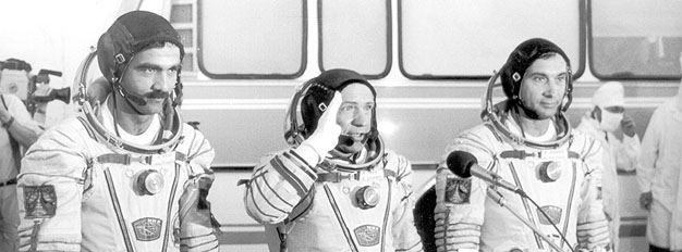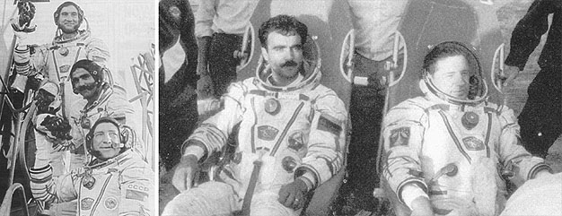 ![]() Ahad, Lyakhov and Polyakov in their flight Sokols, just before launch.
