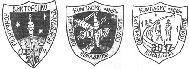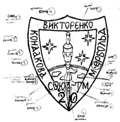 ![]() The original sketches, as they appeared in Novosti Kosmonavtiki No. 18 of August 27, 1994. The third patch was the original idea, but it was considered too playful. Konstantin Lantratov again sketched a launch- and mission patch for this flight. They were both in the shape of a shield, referring to the crew's nickname: Knights. According to Lantratov, the patches were designed with only some input by Elena Kondakova, because Alexander Viktorenko and Ulf Merbold were not available. The patches were presented to the crew during training. Following the succes of TM19, he might have believed the patch would again we worn non the Sokol suits.There are no indications, however, that the patches were actually worn anytime before, during or after the mission. Flying an international mission, the TM-20 crew used the Euromir-94 patch as their official logo.