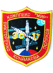 Left: the original Novosti Kosmonavtiki fax as received by Spaceview Operations. Center: The Spaceview Operations/Aviation Patch Supplies patch. Right: The Stewart Aviation patch (1346). Luc van den Abeelen and Jaap Terweij from Spaceview Operations in Amsterdam received the designs from Lantratov and had them produced by Aviation Patch Supplies in Soest, the Netherlands. Again, Stewart Aviation copied both patches. The TM-20 patch has some noticable differences (the D in Merbold and Kondakova, color of rocket flame). Looking at the lettering and the cloud-pattern, we believe Stewart did use the original drawing of Lantratov - some changes made by Spaceview Operations, were not picked up by them. Luc van den Abeelen believes Vadim Molchanov might have leaked this design to Stewart. The orange in the exhaust flame was almost probably left out to save on production costs. The EO-17 patches are almost identical. The three stars are bigger in the Stewart Aviation version and it has a mistake: the Cyrillic "P" and "L" characters in "KomPLeks Mir" at the top of the patch have been swapped, even though the Spaceview version also seems to have two "P" characters - note that the "L" in "Polyakov" is different. Since the Spaceview Operations version differs from the original design, we believe Stewart simply copied this patch and did not have the original drawing. ![]() Left: The original design. Center: The Spaceview Operations patch. Right: The Stewart Aviation version (1344).