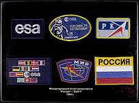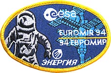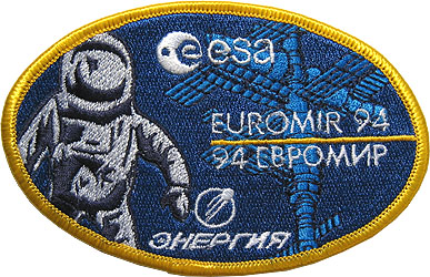 ![]() Left: The TM-21 Presentation Patch Set. Right: The Stewart Aviation Euromir-94 patch. We bought our Euromir-94 patch directly from a dealer in Moscow. We have seen two original Euromir-94 patches for sale so far and a third as part of the official Zvezda Presentation Patch Set. Stewart Aviation in England produced a mass-produced souvenir version (1444). It can be recognized by the twill, almost purple background (original is fully embroidered). Cargo Bay Emblems (formerly known as Eagle One Aerospace) also made a souvenir version. Stewart also produced a personal patch for Viktorenko (1342), Kondakova (1343), Merbold (1318) and his back up, Pedro Duque (1316). The cosmonauts have never been seen wearing those either.