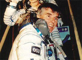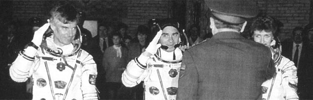 ![]() Merbold, Viktorenko and Kondakova ready for launch. ![]() The Esa patch on Merbold's Sokol suit. ![]() The Esa flag patch on Merbold's Sokol suit