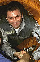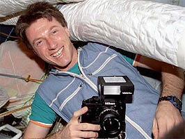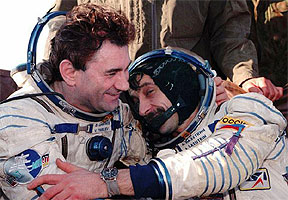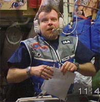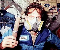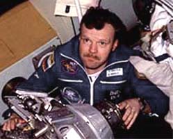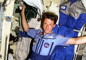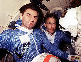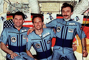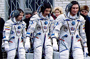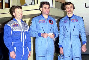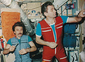 Left: Tsibliev and Lazutkin in their daily "working" cloths. Right: Foale in his "working" cloths.