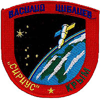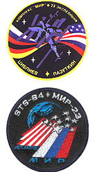 ![]() Left: Tsibliev's Molchanov patch; he did wear it. Right: Lazutkin's Molchanov patch. We've never seen him wearing it.