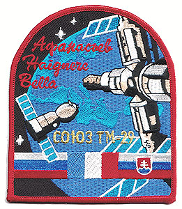 ![]() ![]() Left: Alex Panchenko's Stefanik patch. Center: Stewart Aviation's version. Right: The Stewart Aviation Perseus patch. Stewart Aviation and a couple of German patch dealers bought their Soyuz TM-29 patches directly from Spaceview, so the official patch was available in big quantities to collectors. Therefore, no souvenir versions were produced. Stewart did make a copy of the Perseus patch and Alex Panchenko did have a souvenir version of the Stefanik patch available. It had several black components that should have been white. Also, the visor of the cosmonaut was filled with a black 'grid'. This design was in turn copied by Stewart, so two 'black' souvenir versions with 'filled' visors exist. ![]() The Presentation Patch Set