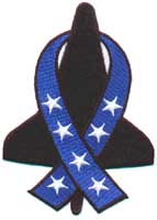 The STS-107 Commemorative Patch. Marc Jacobs, who designed Space Shuttle crew patches in the past, artistically designed and graciously made available at no cost to be reproduced in embroidery an "In Memory" logo in the wake of the tragedy of STS-107. AB Emblem made this special commemorative patch honoring Shuttle flight STS-107 and the crew of the Columbia. As you can see there are two versions of this patch, the one on the right has the Jewish Star of David in the center for Ilan Ramon.