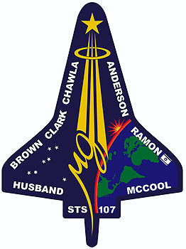 ![]() (STS107-S-002 - October 2001) --- The seven STS-107 crew members take a break from their training regimen to pose for the traditional crew portrait. Seated in front are astronauts Rick D. Husband (left), mission commander; Kalpana Chawla, mission specialist; and William C. McCool, pilot. Standing are (from the left) astronauts David M. Brown, Laurel B. Clark, and Michael P. Anderson, all mission specialists; and Ilan Ramon, payload specialist representing the Israeli Space Agency.